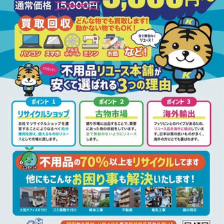 リユース本舗大津店では、不用品の回収、リサイクル、粗大ゴミの処分を専門に行っております🚚